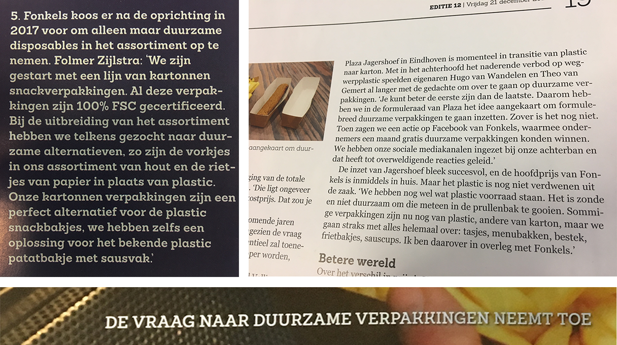 Im Januar 2019 wird Fonkels wieder auf der Horecava vertreten sein, um die neuesten Entwicklungen im Bereich der nachhaltigen Verpackungen zu präsentieren. Werden Sie uns