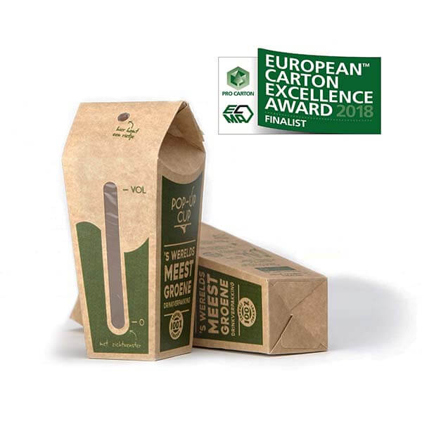 Bei der Auswahl einer Barriere berücksichtigen wir auch immer den nächsten Schritt in der Kette, das Recycling. Häufig wird dem Karton eine PE-Schicht hinzugefügt. Allerdings ist es wirtschaftlich nicht machbar, diese beim Recycling zu trennen. Denken Sie an Kaffeebecher oder Getränkekartons. In diesem Fall entscheiden wir uns dafür, zwei leicht trennbare Monomaterialien zu verbinden. Karton mit herausnehmbarem Etui.
